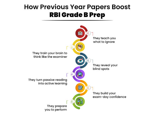 Anyone can study. But not everyone is trained to perform. The RBI Grade B exam is designed to test composure, time management, and mental sharpness and not just knowledge. Previous year papers bridge that gap. They help you in improving your speed, dealing with mental fatigue, and making decisions under pressure. They simulate the real experience, so that by the time you’re writing the actual exam, it’s just another paper and not a make-or- break moment.
